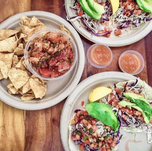 I got the salmon poke bowl and my mom got the bear flag tacos.